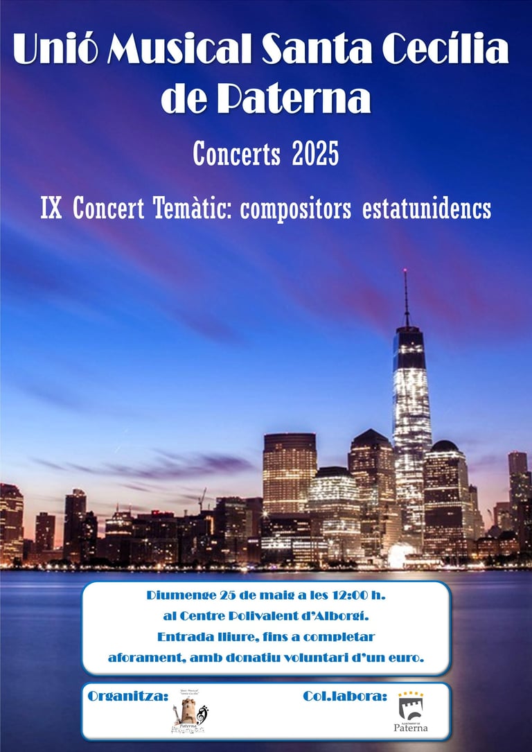 El próximo concierto de la Banda Sinfónica tendrá lugar el próximo domingo 25 de mayo, a las 12:00 h. en el Centro Polivalente de Alborchí, antigua Casa de la Cultura. Este será nuestro IX Concierto Temático, que en esta ocasión estará dedicado a los compositores norteamericanos.